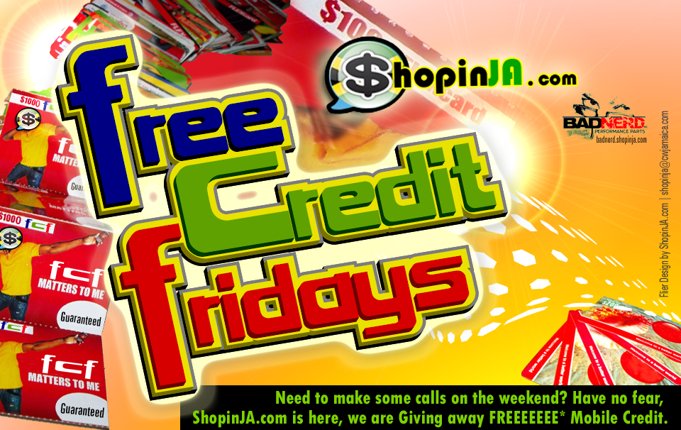 Disclaimer:‘FCF’ is an exclusive ShopinJA.com and its co-sponsors promotion, ShopinJA.com cannot be held responsible for any related incidents that may occur as a result of ‘FCF’, you are taking part voluntarily. This ShopinJA.com promotion will happen every Friday unless otherwise stated. The mobile companies of Jamaica that are mentioned are in no way directly affiliated with the ‘FCF’ Promotions and they also cannot at any point in time be held responsible for incidents that may occur. – The winners of ‘FCF’ may wish to remain anonymous, however a feedback thread will be created for winners who wish to publicly announce their winnings. Due to the nature of this promotion, every and anybody is elligable to play except the Administrator Himself or anyone that is permittied by the Administrator to Issue credit on 'FCF'---